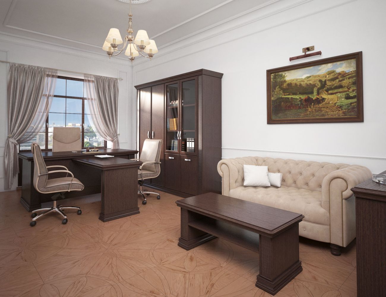 Изысканный и элегантный кабинет, выражает утонченный вкус, аристократизм, яркость и гармоничность своего владельца.