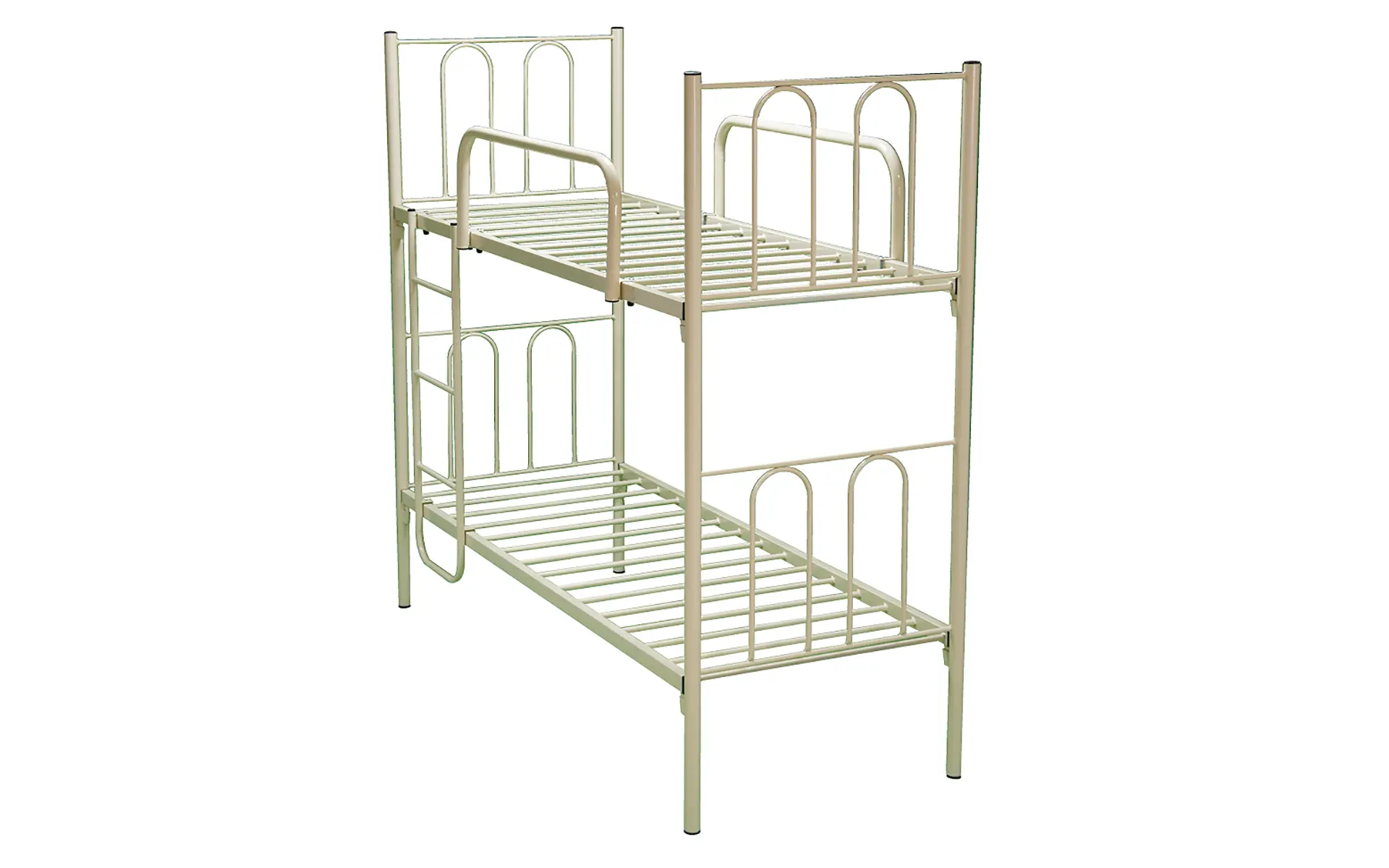 Кровати нашего производства состоят из каркаса, включающего две цельносварные опорные спинки, наружный контур которых образован гнутыми деталями разных форм и размеров, и основания, которое крепится к спинкам посредством четырех клиновых соединений. Основание состоит из продольных металлических реек и перемычек, шаг расположения которых, согласуется с шагом пружин матраца на зависимом пружинном блоке.