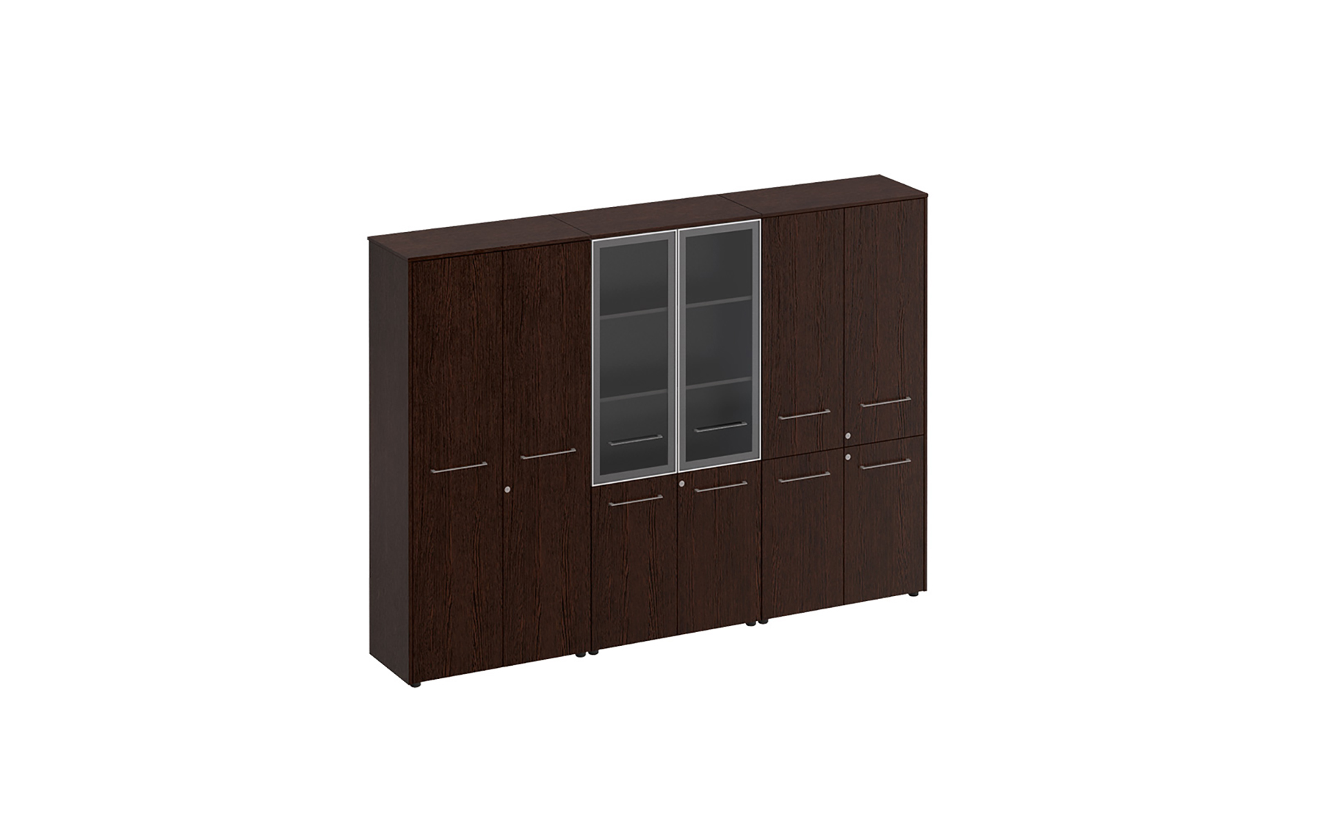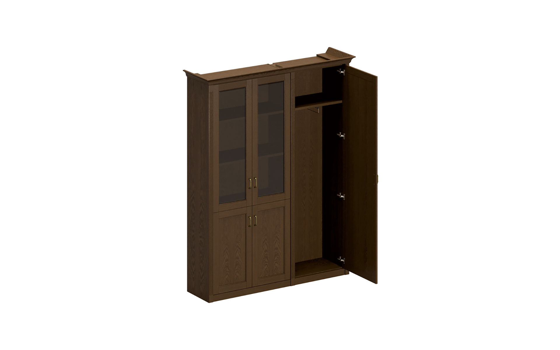 Шкаф комбинированный высокий (закрытый + стекло + одежда) МЕ 377